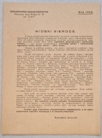 Dodatkowy druk ulotny (trudno określić czy oryginał, czy faksymile) wydawany przez Towarzystwo Gniazd Sierocych, Warszawa, Aleja Wojska Nr. 20 (pod tym adresem, w latach 1940-48, mieszkał Kazimierz Jeżewski), z fragmentem programu Wiosek Kościuszkowskich.