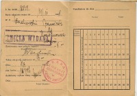 Wypełniona ręcznie: L.ks.meld. 18539, ważna do 14/10 1936, wystawiona dla Franciszka Wachowskiego(?) z (nieczytelne , który zatrzymał się w pensjonacie Lwigród (?) wpis troszkę zasłonięty pieczątką).