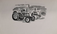 na pierwszej ciągniki, pewnie chodzi o Zakłady mechaniczne „ Ursus”, pozostałe nierozpoznane.