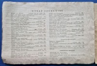 Stan: całość pofalowana po zalaniu, dolny margines lekko przycięty(brak wersu noty na tylnej okładce, z ozn. drukarni?), drobne przebarwienia, zagniecenia, wytarcia i zabrudzenia na okładkach, środek czysty, zewnętrzne karty bardziej pożółkłe.