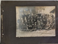 Fotografia grupowa o wymiarach 16,8 x 22,1 cm, naklejona na ciemną kartę albumu o wymiarach 24 x 32 cm.