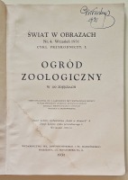 Świat w obrazach. Nr.4. Wrzesień 1931. Cykl przyrodniczy. I. Ogród Zoologiczny w 100 zdjęciach. Tekst opracował Dr S. Gartkiewicz przy współudziale zarządu Warszawskiego Ogrodu Zoologicznego. Zdjęcia Photo-Plata i innych, okładka T. Gronowskiego.