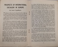 Nieczęsta broszura brytyjskiego socjalistycznego ugrupowania Socialist Vanguard Group, działającego w ramach Laburzystów/Partii Pracy (Labour Party). W treści przemówienia autorów z różnych państw: John Hynd (Anglia), Paul Tofahrn (Belgia), Frank Horrabin (Anglia), Minna Specht (Niemcy), Andre Philip (Francja), Szmul Zygielbojm (Polska).