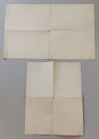 Druk jednostronny, z dopiskiem piórem, 3 arkusze sklejone dla usztywnienia, format 11,6 x 18,1 cm. Stan dobry: arkusze się troszkę rozkleiły, zabrudzenia, wgniecenia u góry i z lewej.
